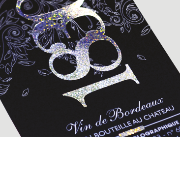 Son aspect métallisé accroche la lumière et sublime certains détails imprimés. Sa présence est le gage de la qualité de vos produits. C’est une finition qui ajoute un rendu précieux ou moderne suivant son intégration au sein de votre création graphique.